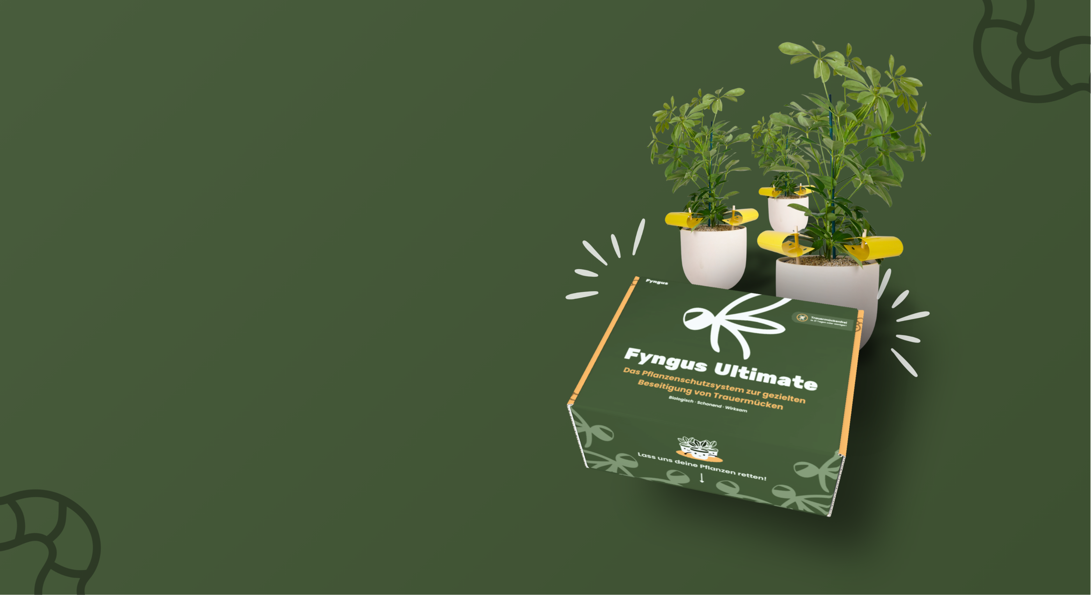 Fyngus Ultimate bekämpft Trauermücken dort, wo sie entstehen, in der Erde, an der Oberfläche und in der Luft. Das System verhindert neue Eiablage, bekämpft Larven und fängt adulte Mücken ab.