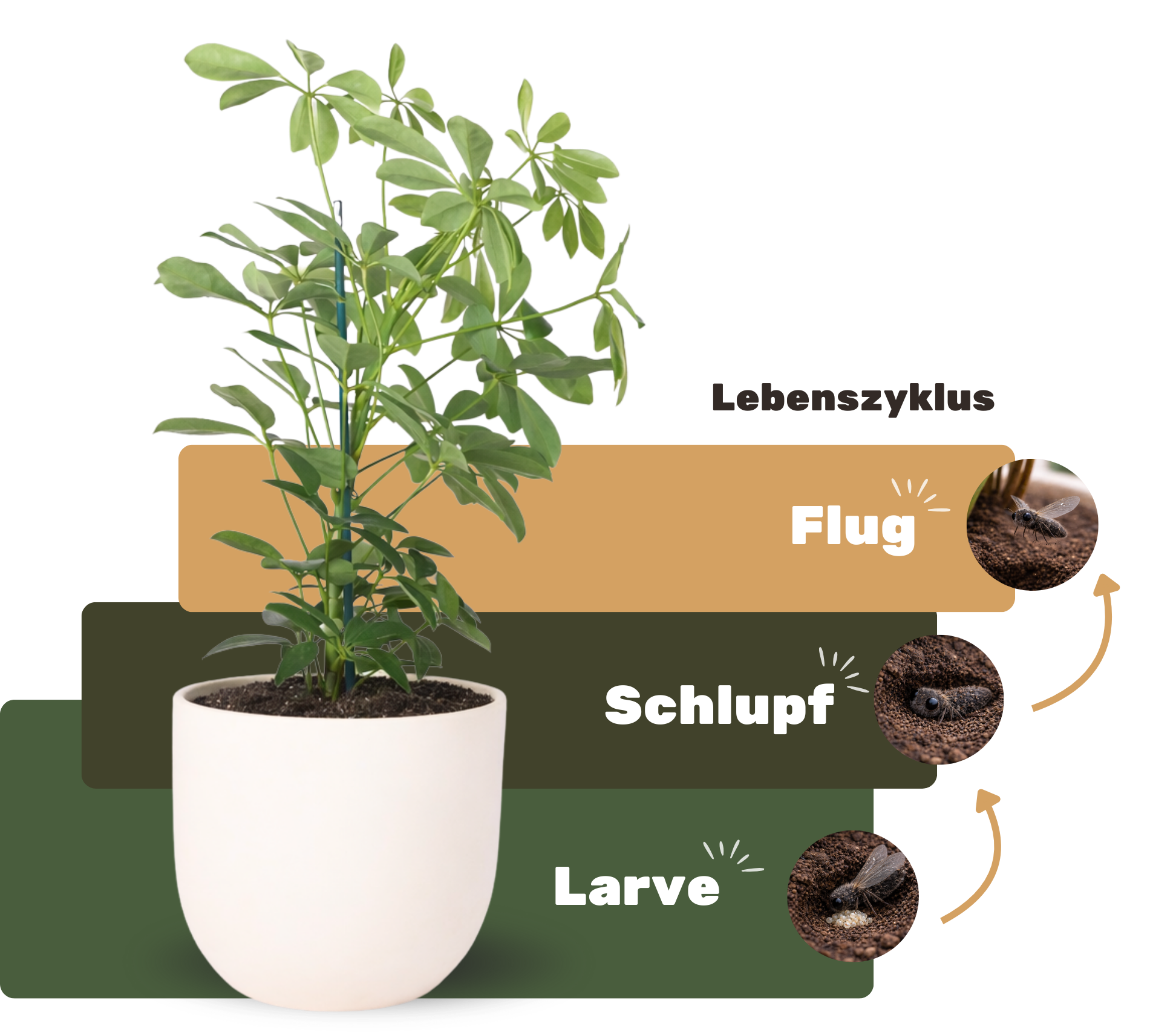 Der Lebenszyklus der Trauermücke erstreckt sich über drei Zonen rund um die Pflanze und macht sie so zu einer der hartnäckigsten Schädlingen bei Zimmerpflanzen.